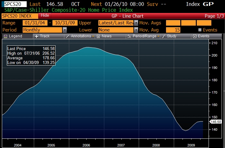 The federal reserve has been using two tactics to keep interest rates low: 1) by keeping the federal funds rate low to put a ceiling on short term interest rates 2) through asset purchase programs in which assets (mostly mortgage backed securities) are purchased by the fed to artificially increase prices and lower long term yields. The fed was especially concerned about longer term yields because the mortgage industry relies on low interest rates to increase demand for houses. When rates increase, the monthly price for a house increases proportionally and then families decide they cannot afford to purchase so they continue to rent. Lower demand puts further downward pressures on prices. The good news is that house prices staged a muted rally from mid-2009 through the end of the year.
