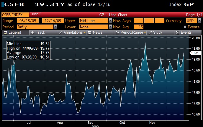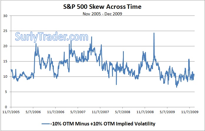 If you have read some of my articles regarding the Credit Suisse Fear Barometer or my discussions surrounding skew, then you understand why 10% out of the money puts are often more highly valued than 10% out of the money calls from an implied volatility standpoint. What I would like to look at today is what it means when the gap between implied volatility on the OTM put changes dramatically from the OTM call.