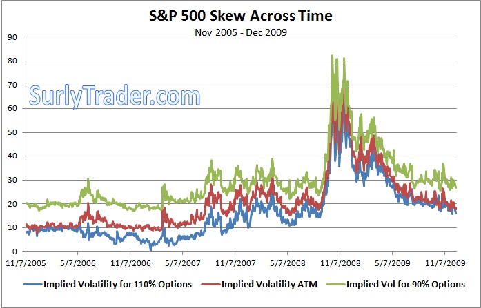 On the other hand, it might be that skew is very predictive in the level of future ATM volatility. Meaning that when skew steepens, implied volatility falls over following time periods. I believe this to be true, but that study is left for another day.