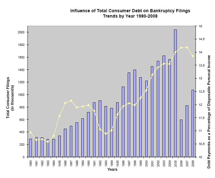 I might be willing to wager quite a bit that bankruptcies will go up considering the foreclosures and debt burden...