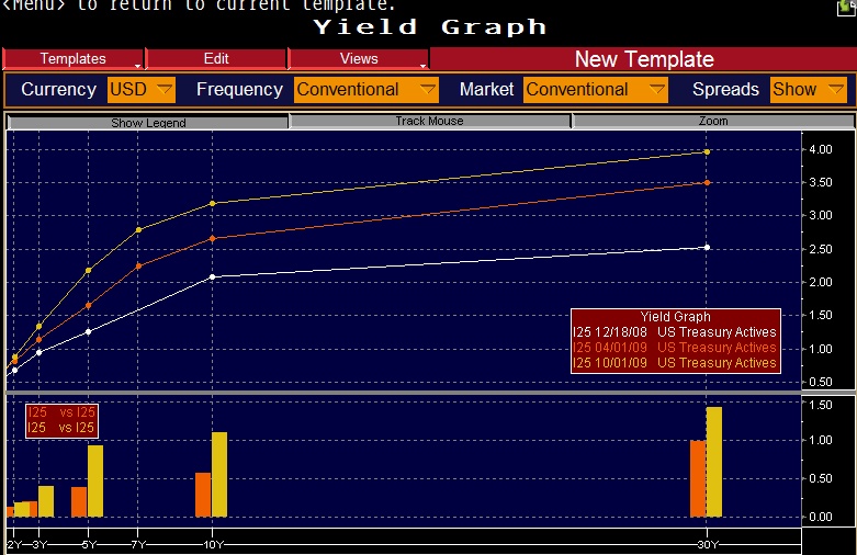 If we believe in any recovery in the world economy then I think it is safe to say that we will not see 30 year treasury yields hit 2.5% as they did on December 18, 2008. Those yield levels were crisis levels. That occurred when there was an extreme flight away from all risky asset classes and into safe assets such as treasury bonds and agency backed mortgage securities. At the time, it did not seem that shorting treasuries was a “no-brainer” because we all know that the crisis would unleash many more months of pain.
